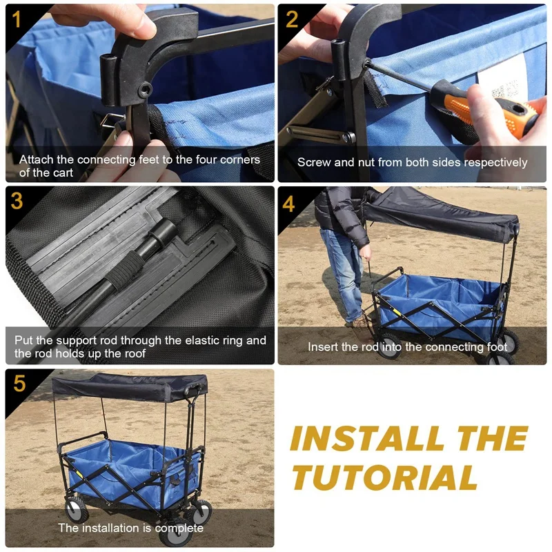 ALL-IN-ONE GARDEN CART: Our folding wagon comes with a universal awning canopy and water-resistant 600D Oxford cloth, making it the perfect accessory for all your outdoor adventures.